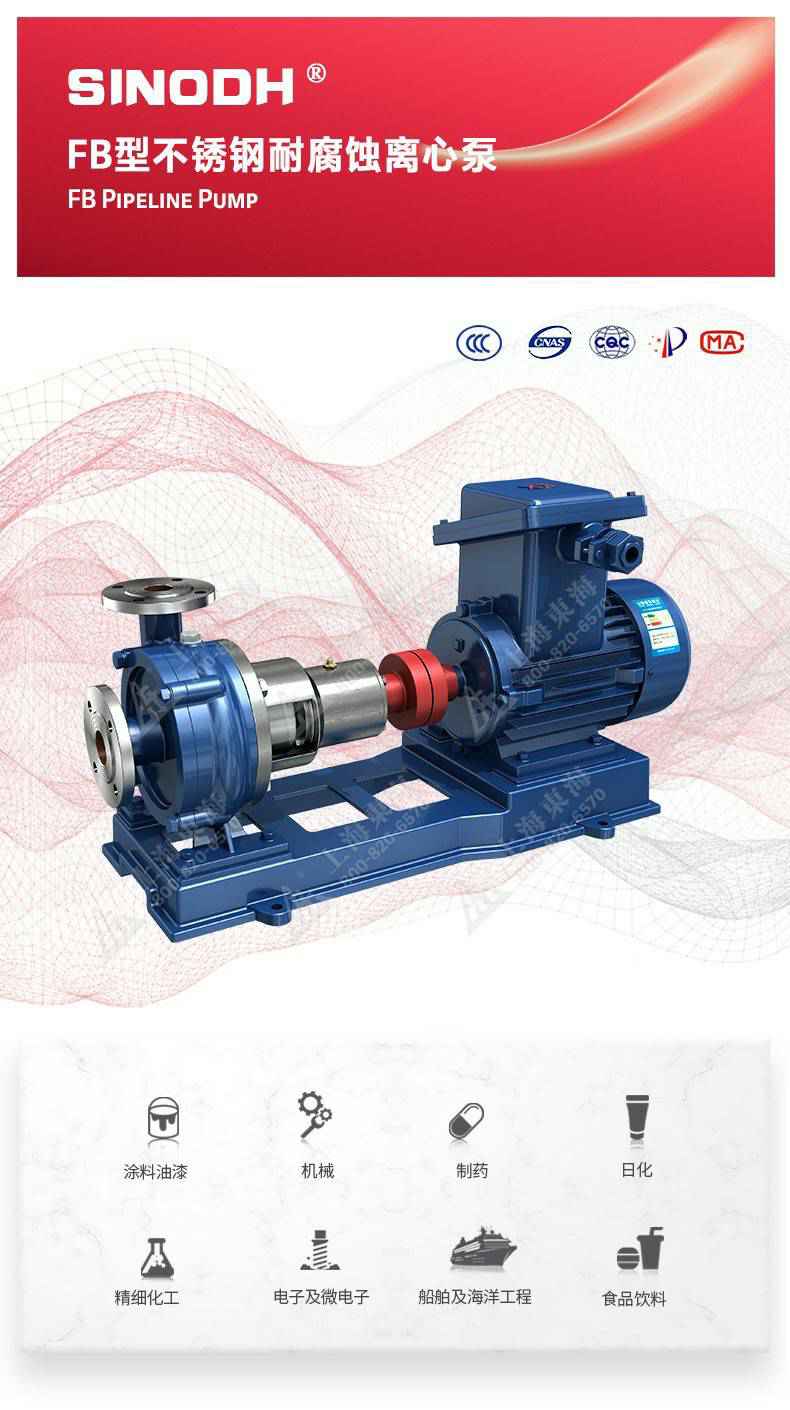 FB型不锈钢单级单吸悬臂式耐腐蚀离心泵,为长春俊鹏精密仪器制造有限公司自主研发生产。本系列产品适用于输送不含固体颗粒,有腐蚀性液体。被输送介质温度为-20℃~200℃,泵的进口压力不能大于0.2MPa,广泛用于石油、化工、冶金、合成纤维、制药、食品、酿造等工业部门,也可供工矿、企业及城市供水、排水之用。