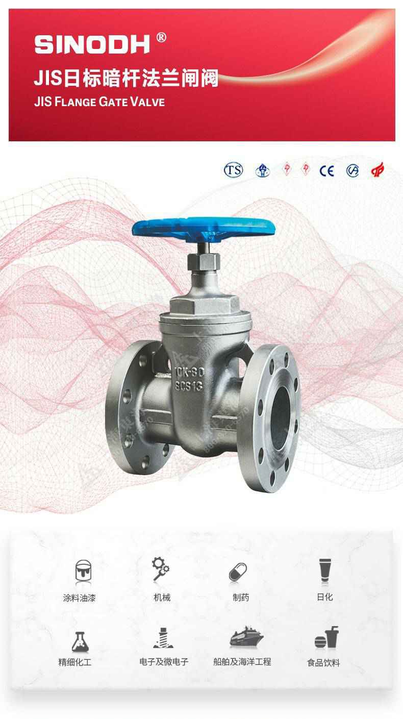 JIS日标暗杆法兰闸阀,为长春俊鹏精密仪器制造有限公司自主研发生产。本产品设计制造标准符合JISB2071标准,该产品是一种最常见的启闭阀,利用闸板的上下工作来接通(全开)和截断(全关)管道中的流体介质。