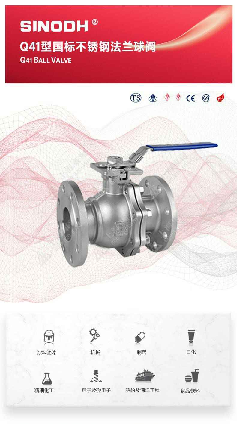 Q41型国标不锈钢法兰球阀,为长春俊鹏精密仪器制造有限公司自主研发生产。本产品设计制造标准符合GB/T12237、GB/T 1 2224标准该产品的球体在介质压力作用下,球体能产生-定的位移并紧压在出口端的密封面上,保证出口端密封。适用于水、溶剂、酸和天然气等-般工业介质,也适用于工况恶劣的介质,如氧气、过氧化氢、甲烷和乙烯等介质。